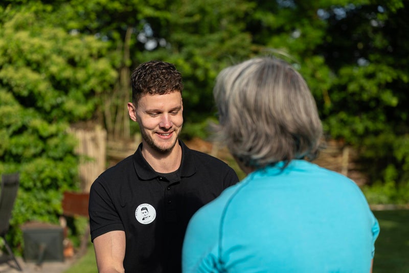 'Menno heeft ervoor gezorgd dat ik weer in beweging ben gekomen! Dat is op zich een wonder te noemen, want ik ben niet echt fan van sporten. Toch ben ik door hem een stuk sterker en fitter geworden. We trainen fijn in mijn eigen tuin, waardoor ik gemotiveerd blijf om ook hiermee door te gaan. Menno is positief, rustig en zeer bekwaam om mensen op een juiste manier te begeleiden. Met af en toe een streng woordje om mij te motiveren. Kortom, hij ziet wat jij en je lichaam nodig hebt. Ik gun iedereen een Menno!'